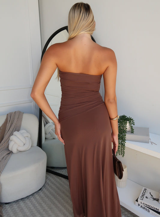 BENNETT STRAPLESS MAXI DRESS - CHOCOLATE