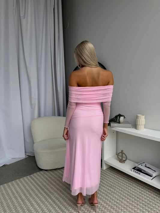 STELLA OFF SHOULDER MAXI - BABY PINK