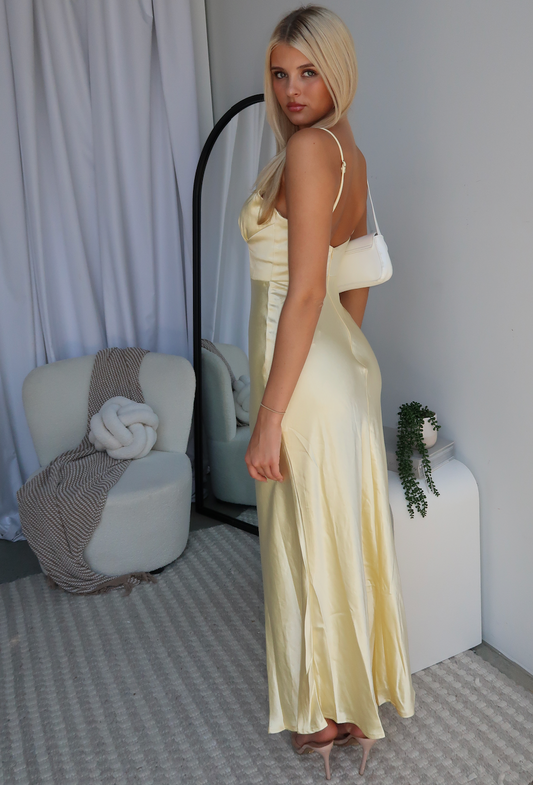MARIAH SATIN MAXI DRESS - LEMON