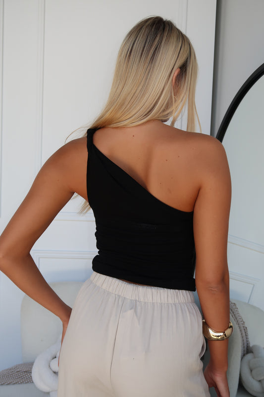 DRAYA ONE SHOULDER TOP - BLACK