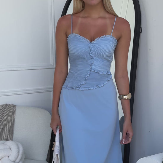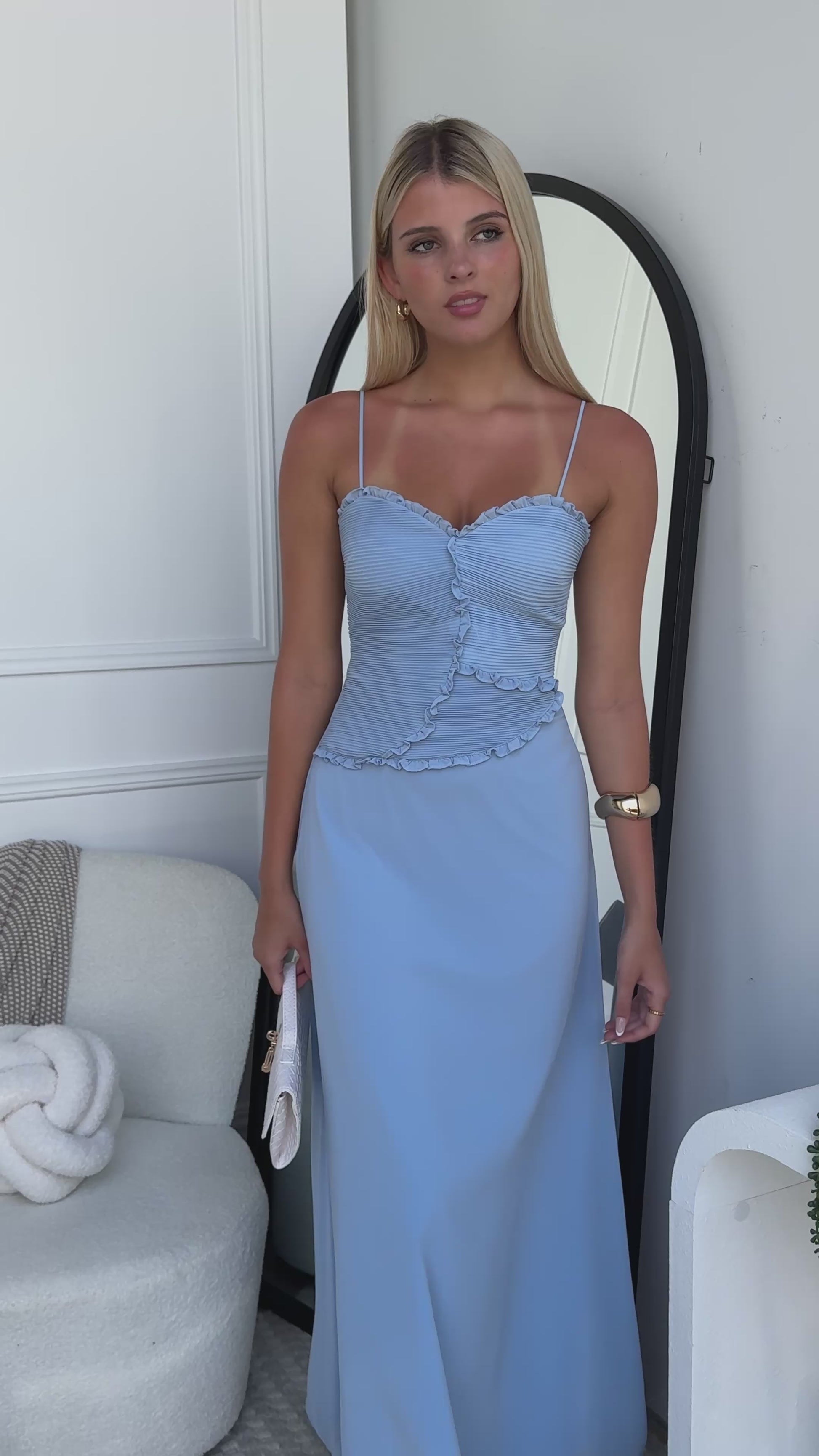 Introducing our FELIX maxi dress, a beautifully crafted blue dress designed for effortless elegance. Featuring a softly pleated bust that enhances and flatters, it flows into a classic A-line skirt that moves gracefully with every step. Lightweight, easygoing, and incredibly comfortable, this dress is perfect for day dates, garden parties, or wedding celebrations. Its breezy fabric and relaxed fit make it a go-to choice for warm days when you want to look polished without sacrificing comfort.