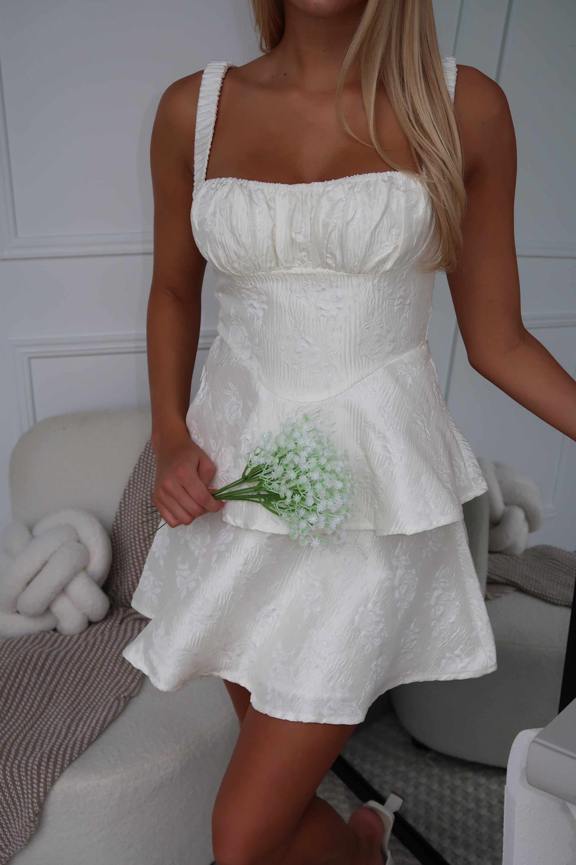 Our IMOGEN tiered mini dress is the definition of flirty and feminine charm. Designed in a gorgeous cream fabric, this piece features tiered layers that create beautiful movement and a romantic silhouette perfect for your next vacay!