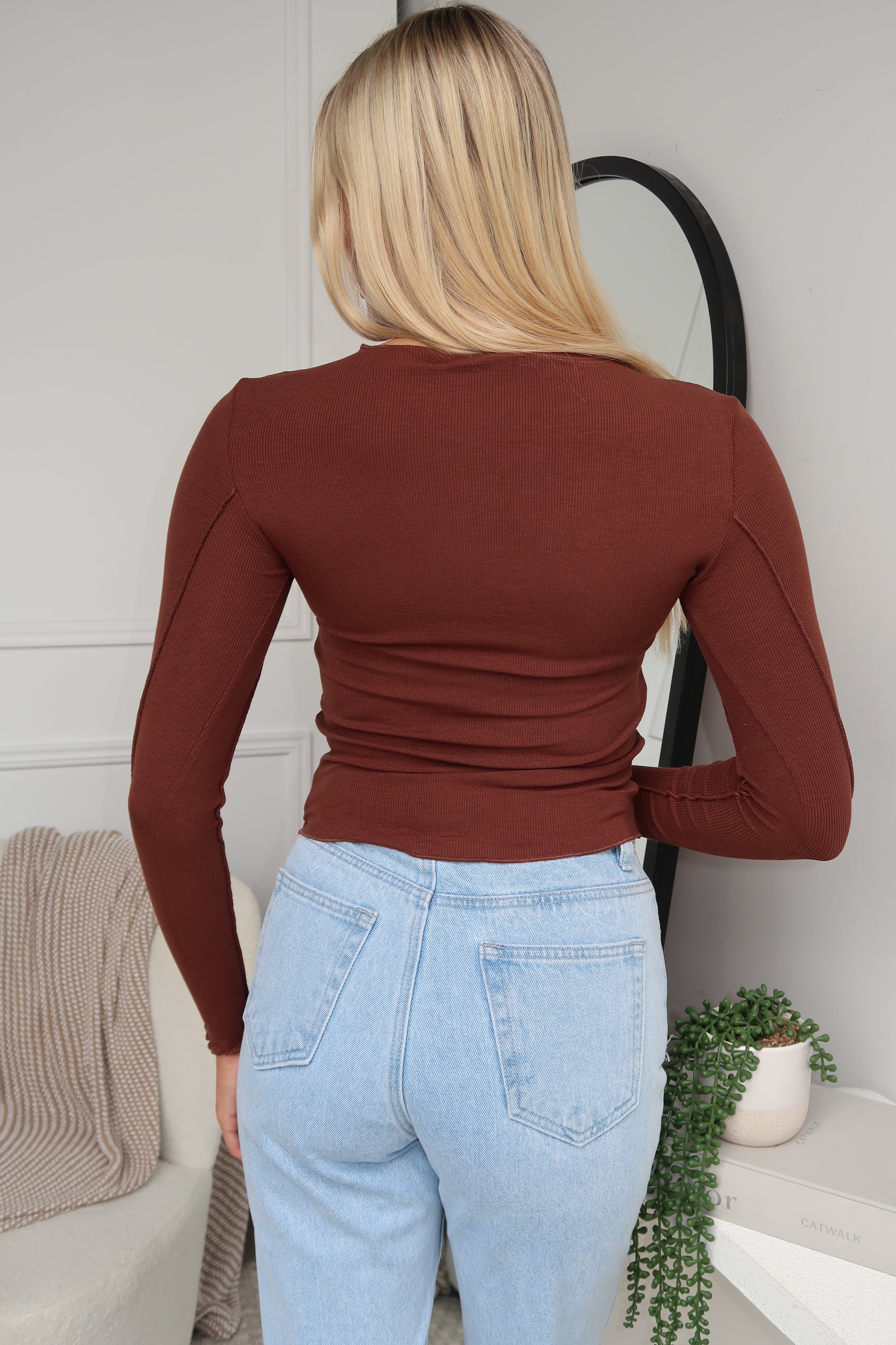 Our JESSI long sleeve chocolate brown essential designed for effortless everyday wear. With its clean, minimal silhouette and soft feel, it’s the perfect staple piece for layering through your winter wardrobe.